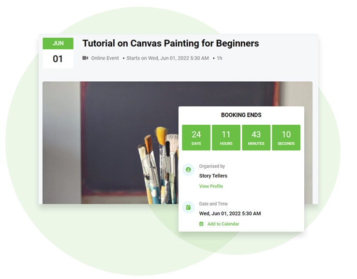 Our Countdown timer can be a unique tool for selling your tickets. The timer shows the end time for ticket sale deadline, discount end period, and more.