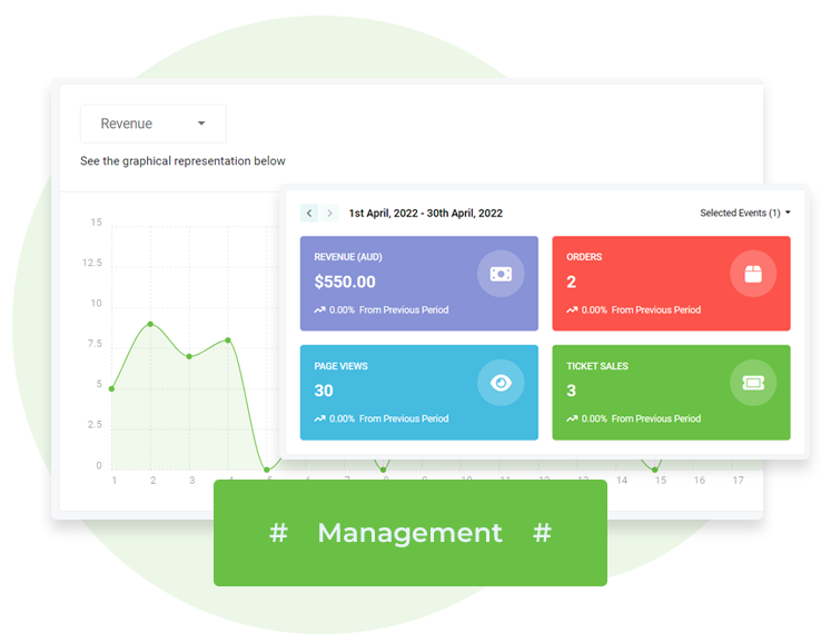Barren's dashboard provides essential analytical information about the event and ticket sales. Track and make decisions accordingly to optimise your events to the fullest.
