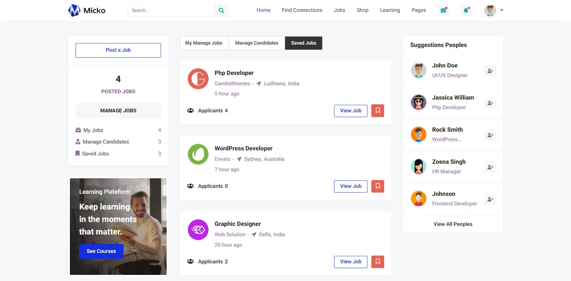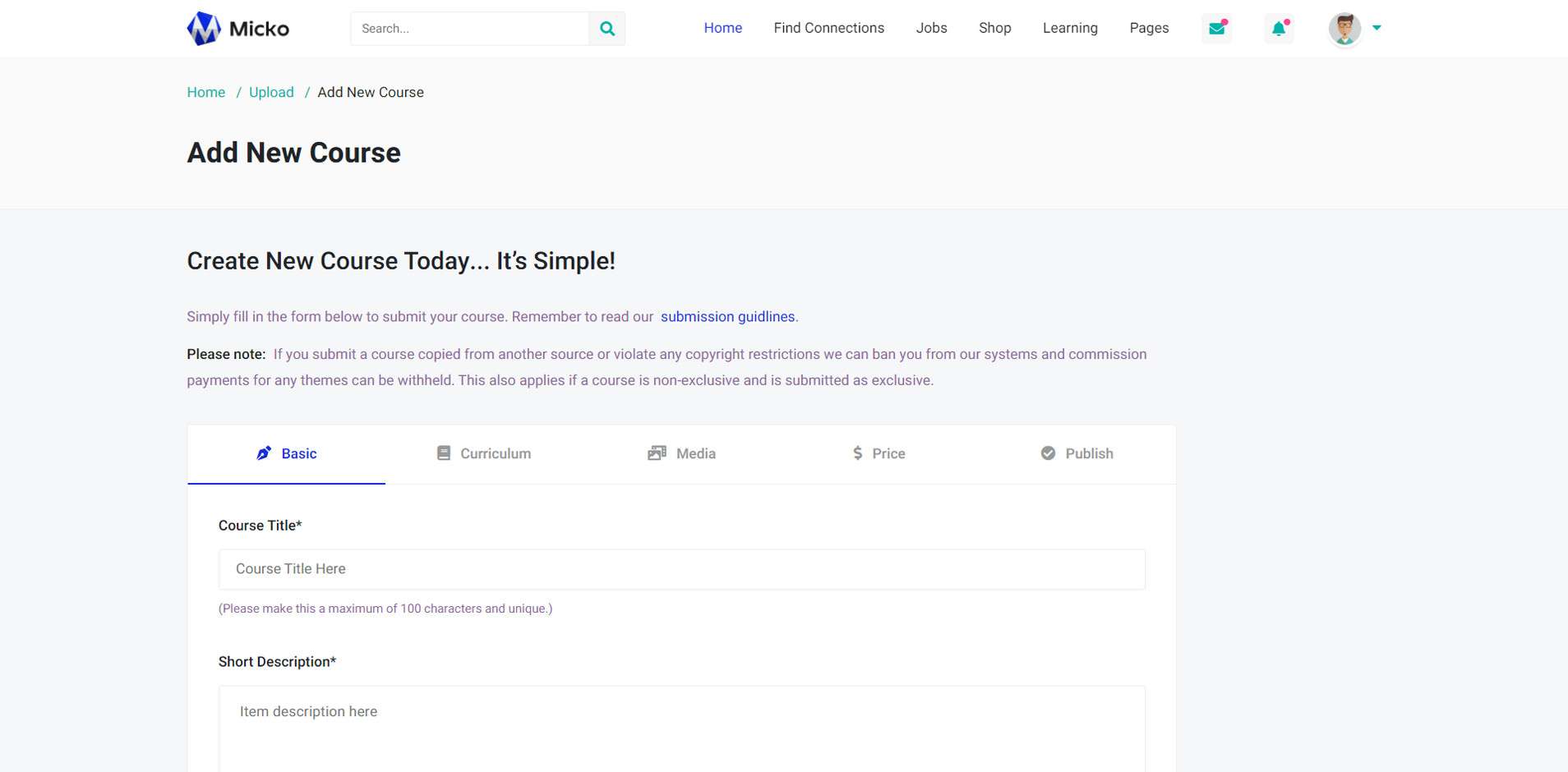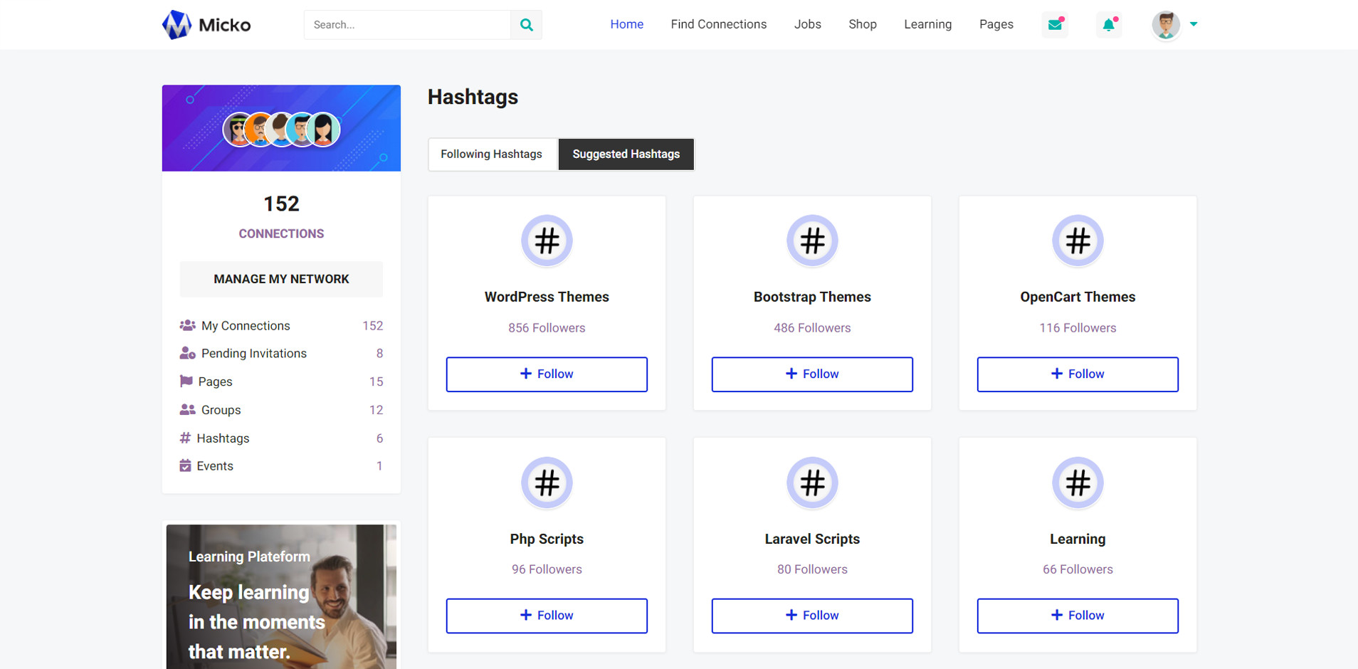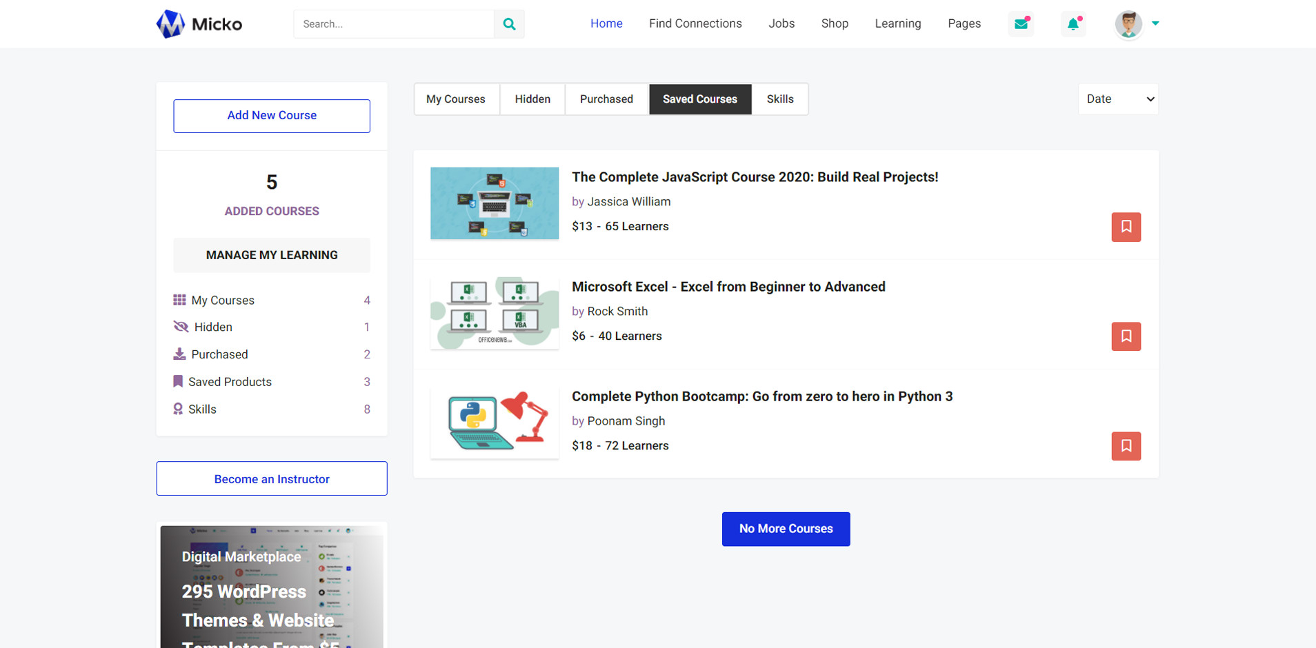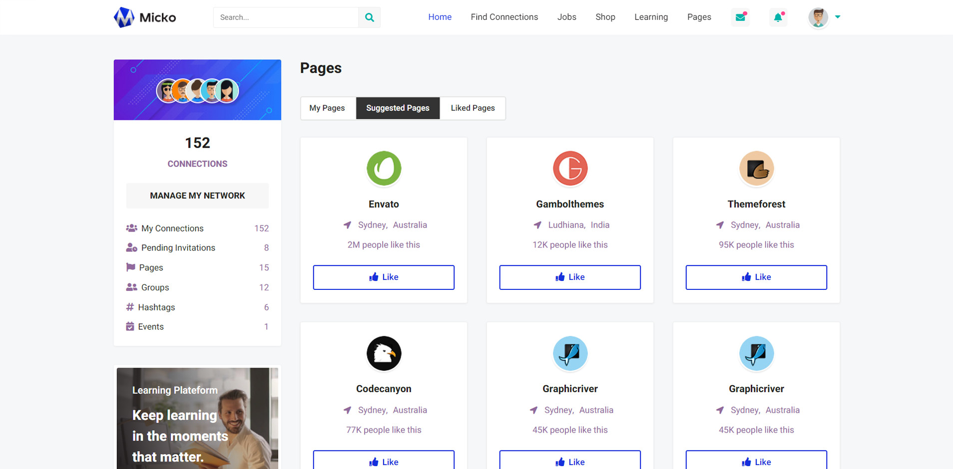 Micko is an all-in-one solution for creating Job Portal, Digital and online education marketplaces with social Nwtworking like Udemy, Skillshare, Coursera, Facebook, Instagram, Envato, Template Monster, Indeed, Monster Jobs etc.