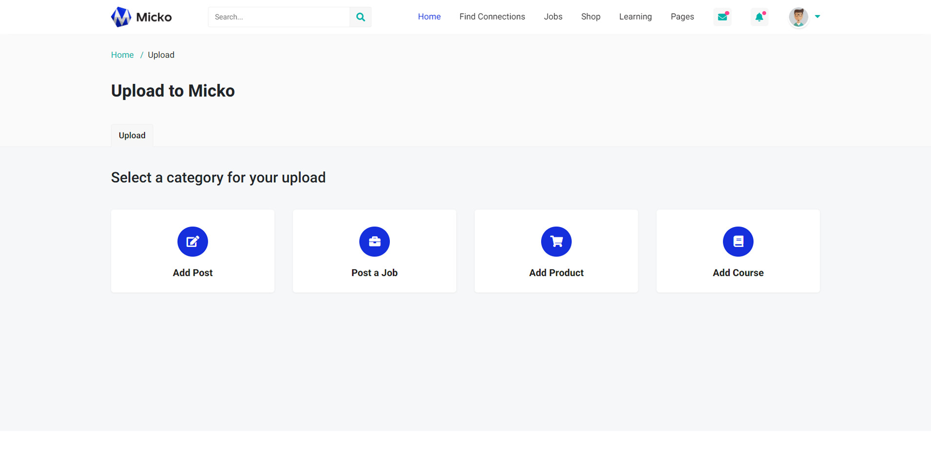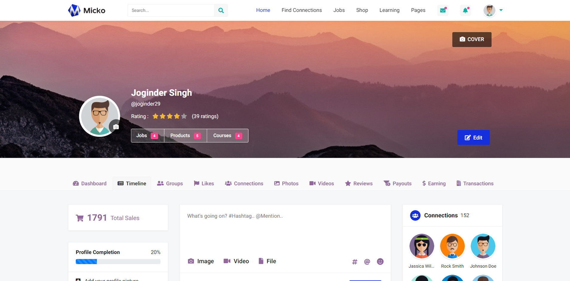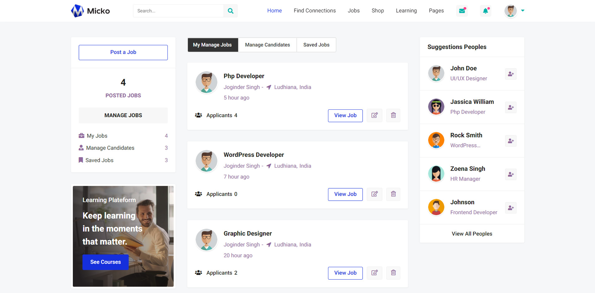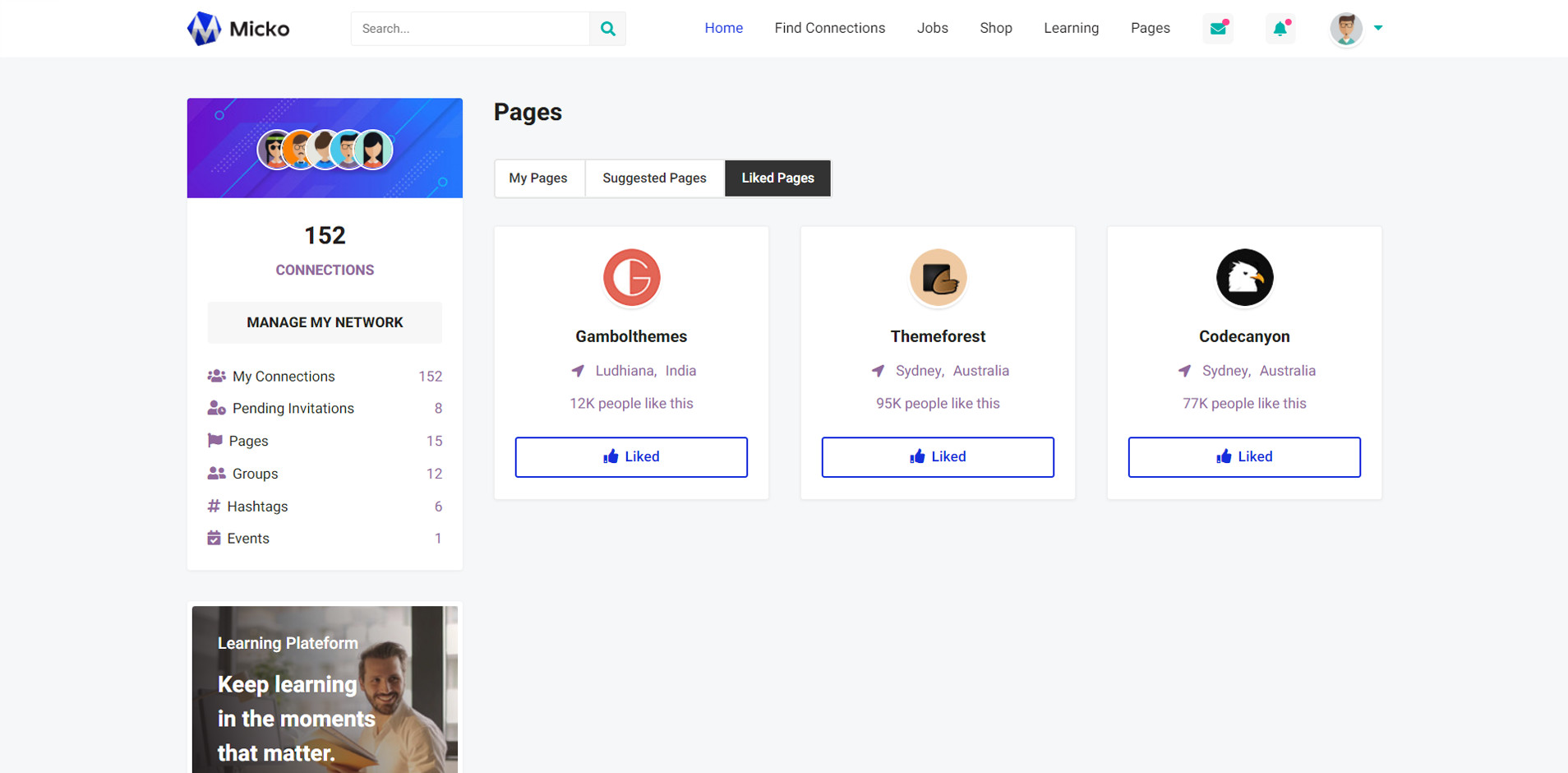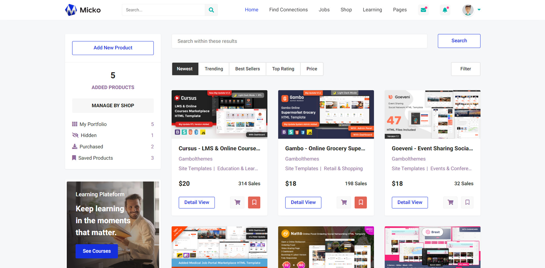 Micko is an all-in-one solution for creating Job Portal, Digital and online education marketplaces with social Nwtworking like Udemy, Skillshare, Coursera, Facebook, Instagram, Envato, Template Monster, Indeed, Monster Jobs etc.