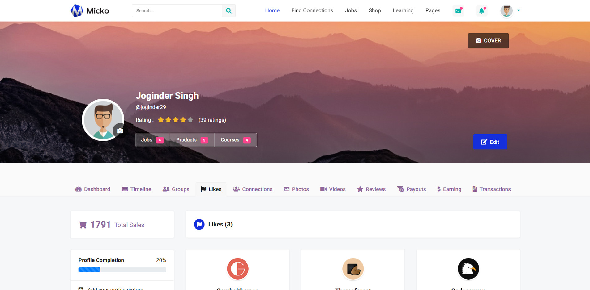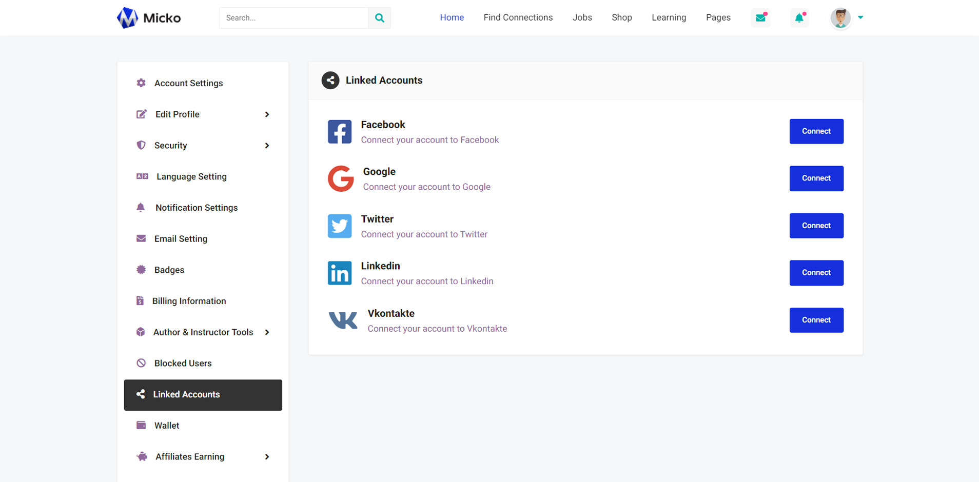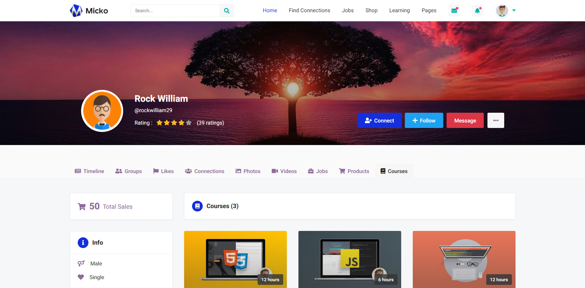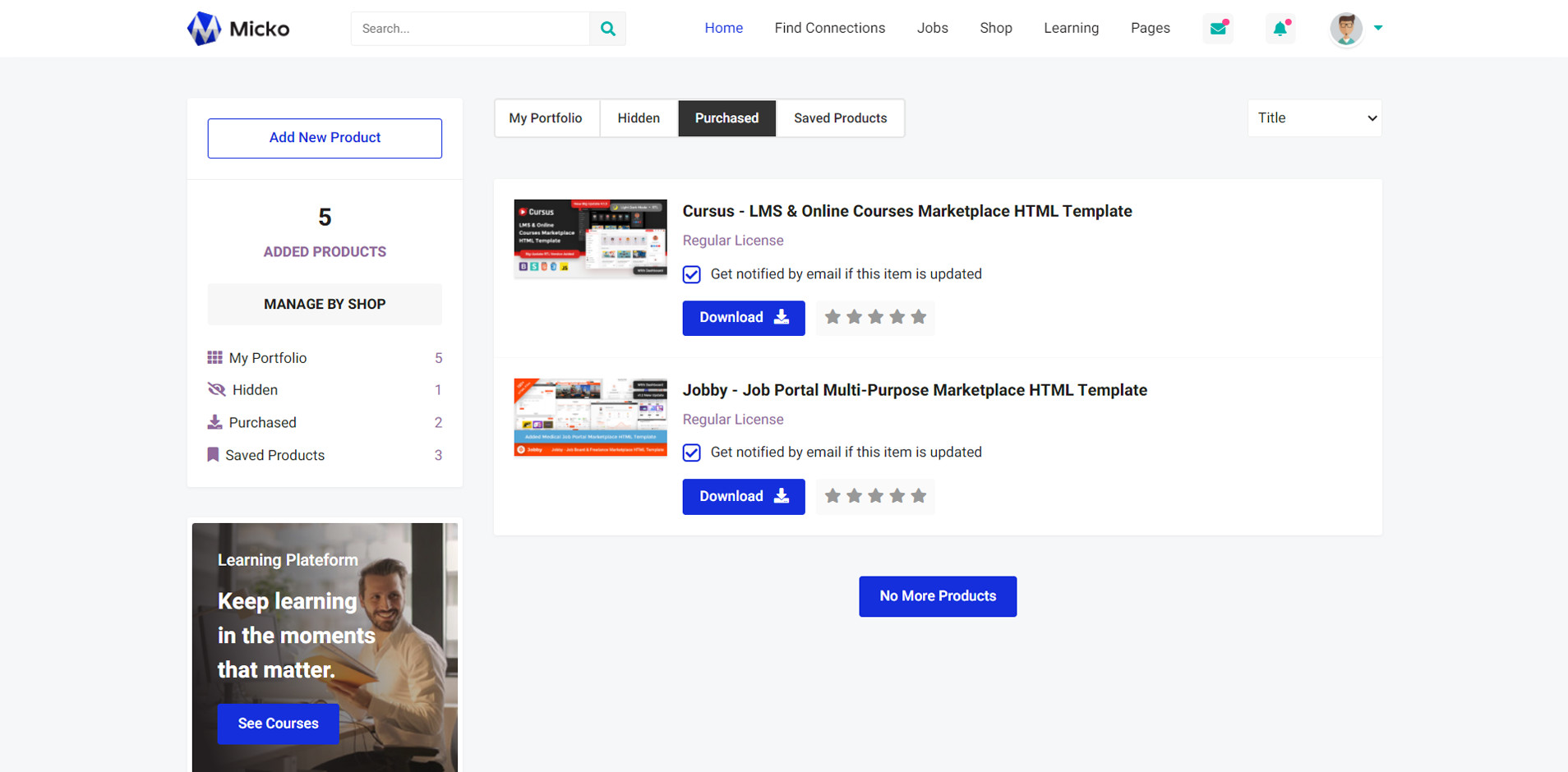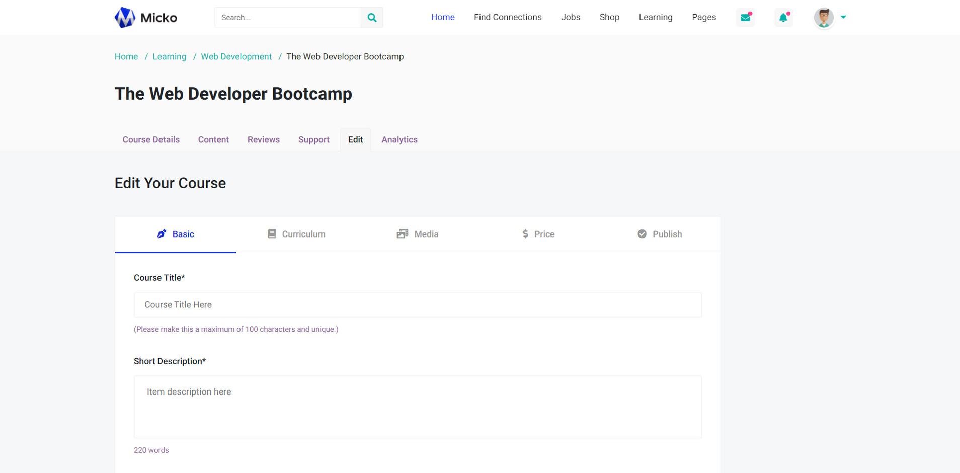 Micko is an all-in-one solution for creating Job Portal, Digital and online education marketplaces with social Nwtworking like Udemy, Skillshare, Coursera, Facebook, Instagram, Envato, Template Monster, Indeed, Monster Jobs etc.