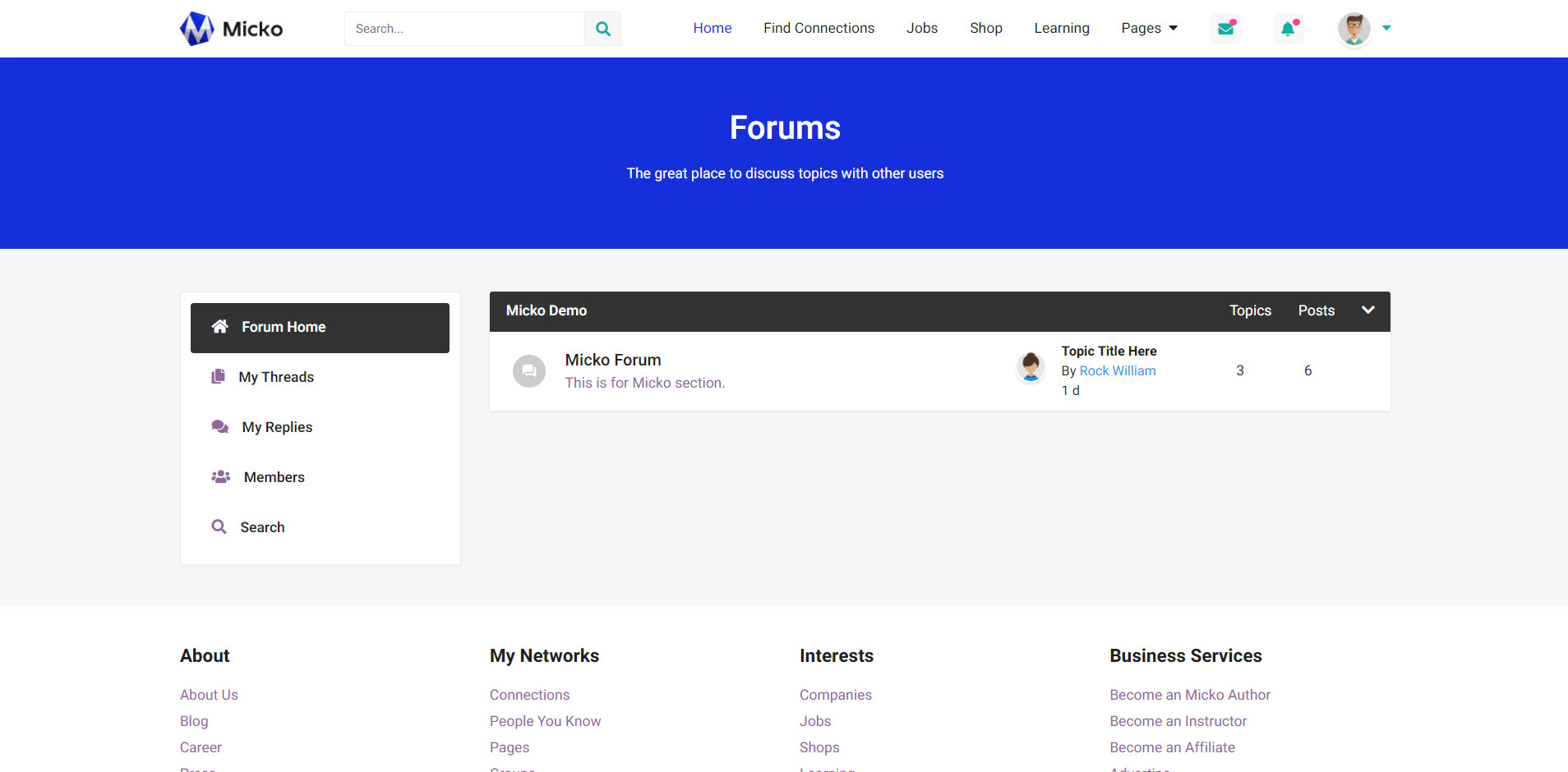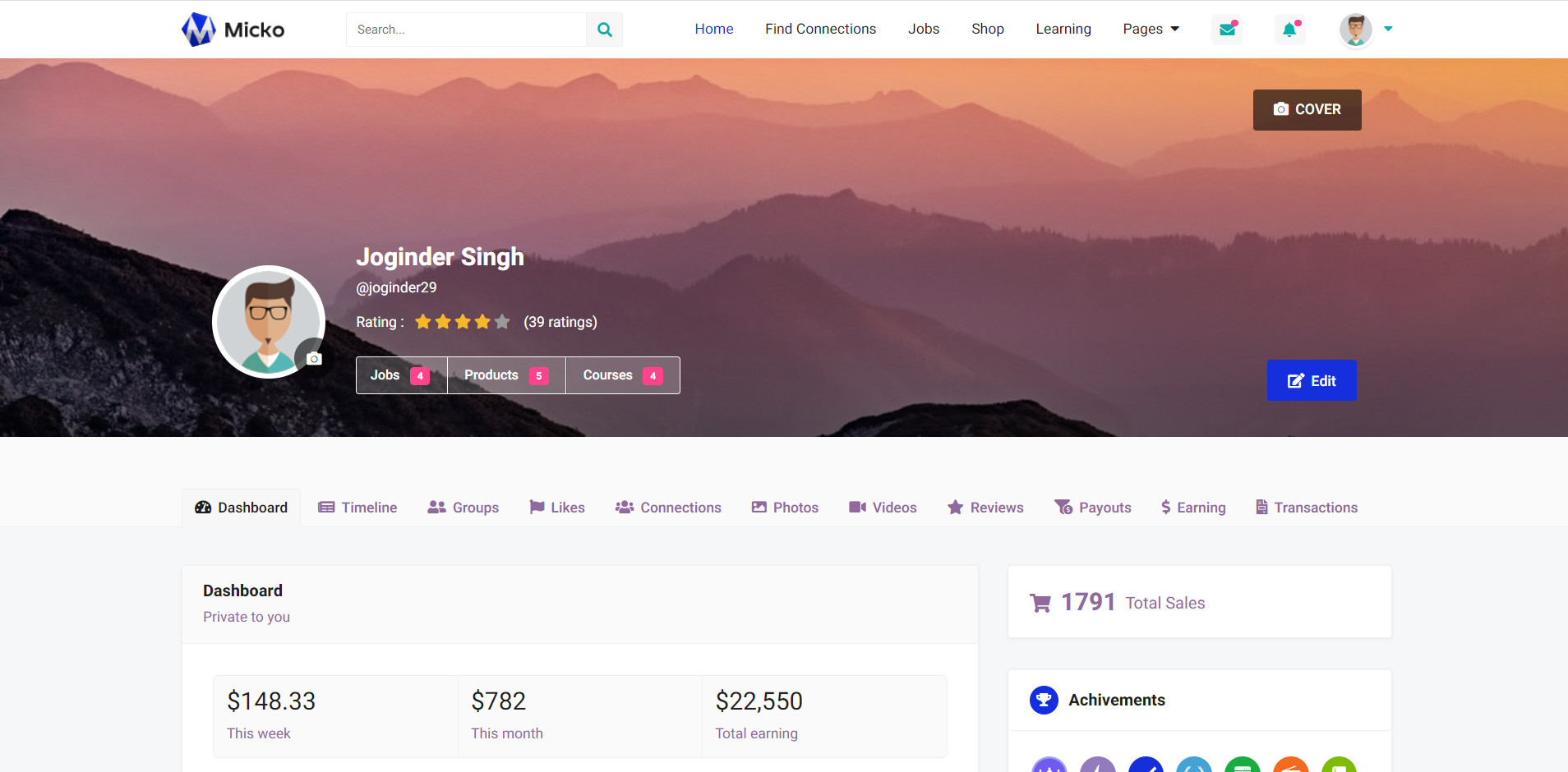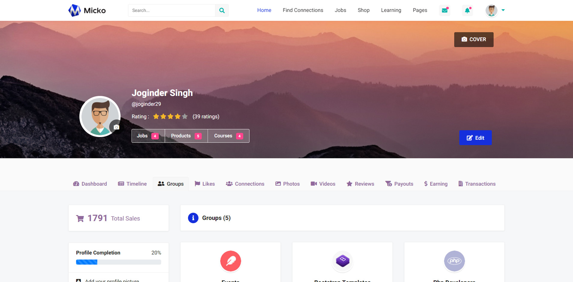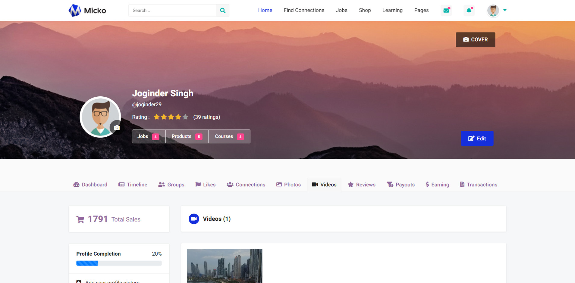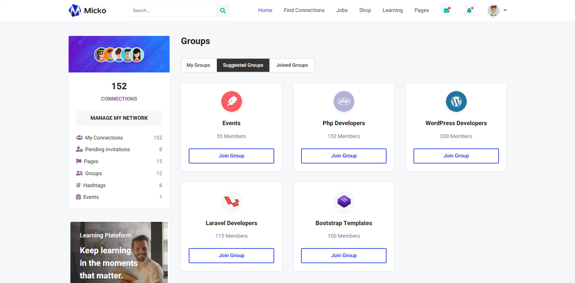 Micko is an all-in-one solution for creating Job Portal, Digital and online education marketplaces with social Nwtworking like Udemy, Skillshare, Coursera, Facebook, Instagram, Envato, Template Monster, Indeed, Monster Jobs etc.