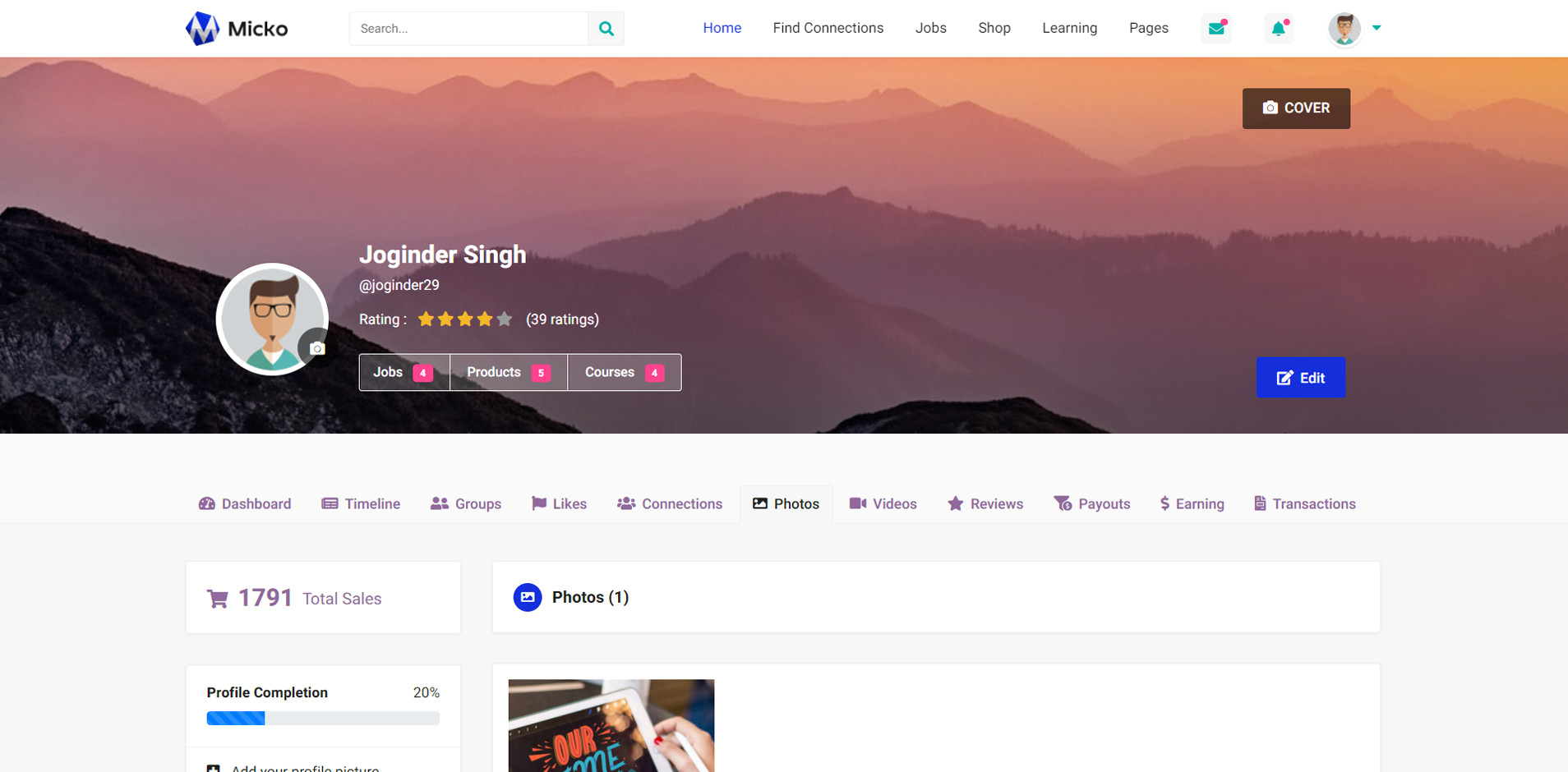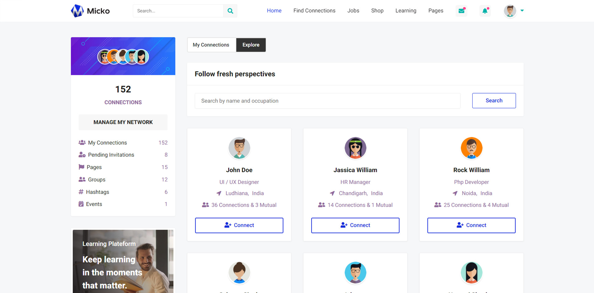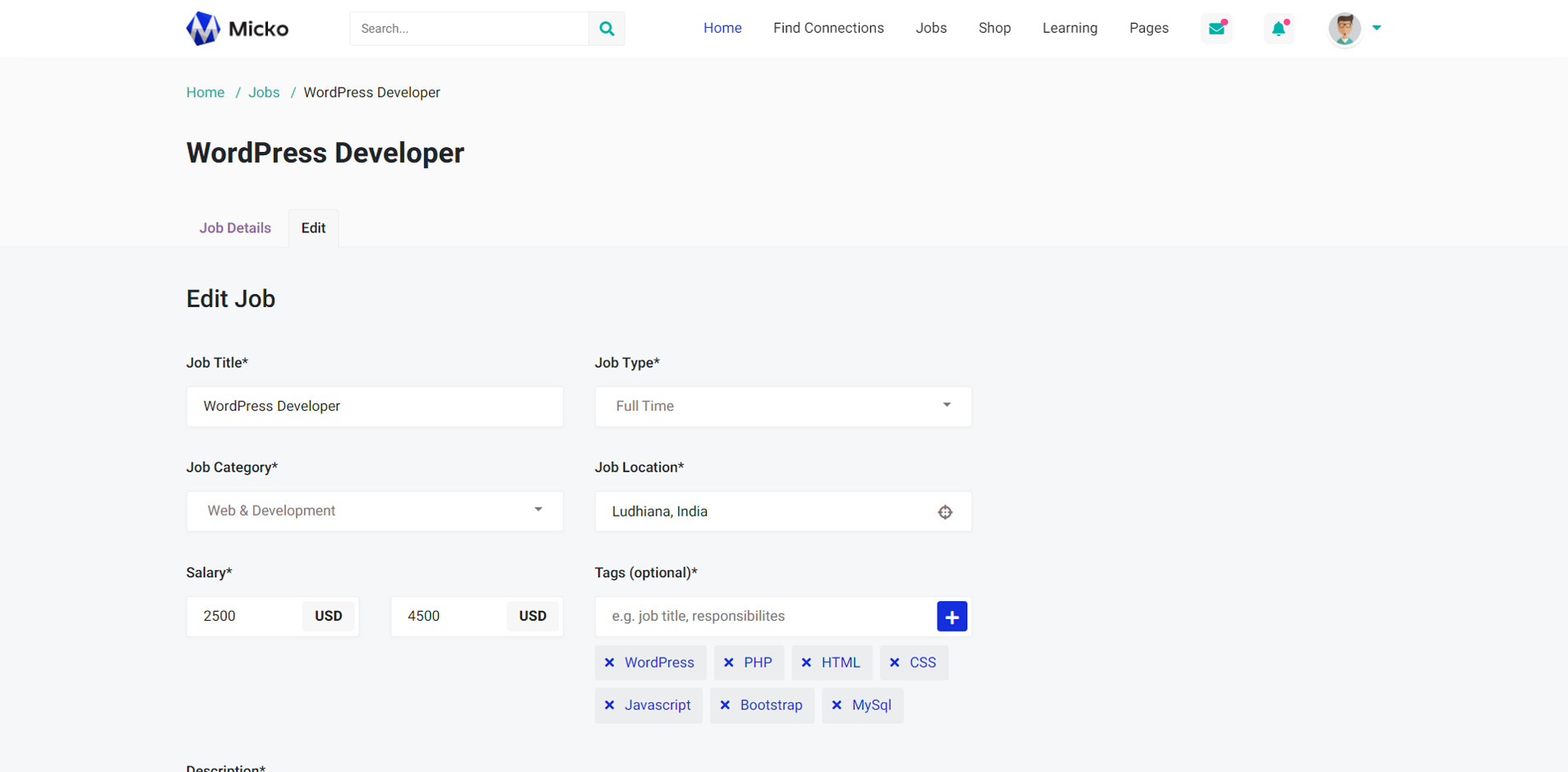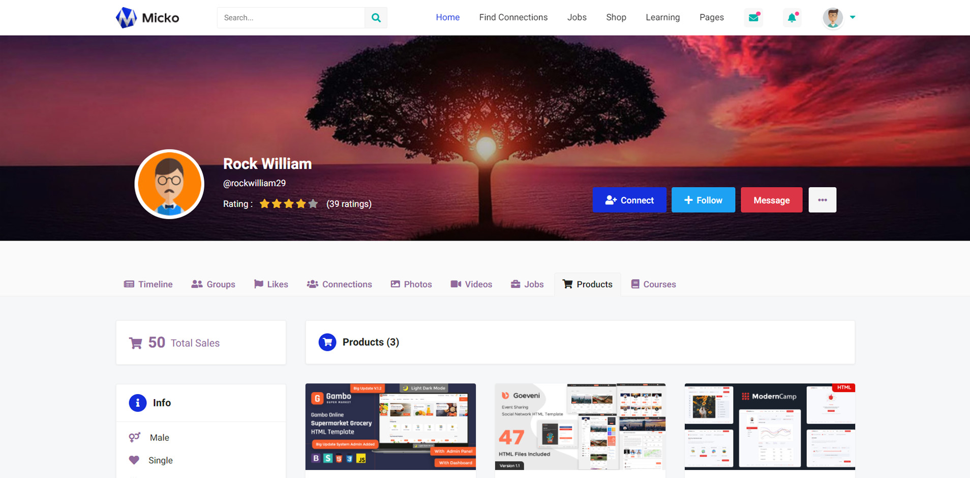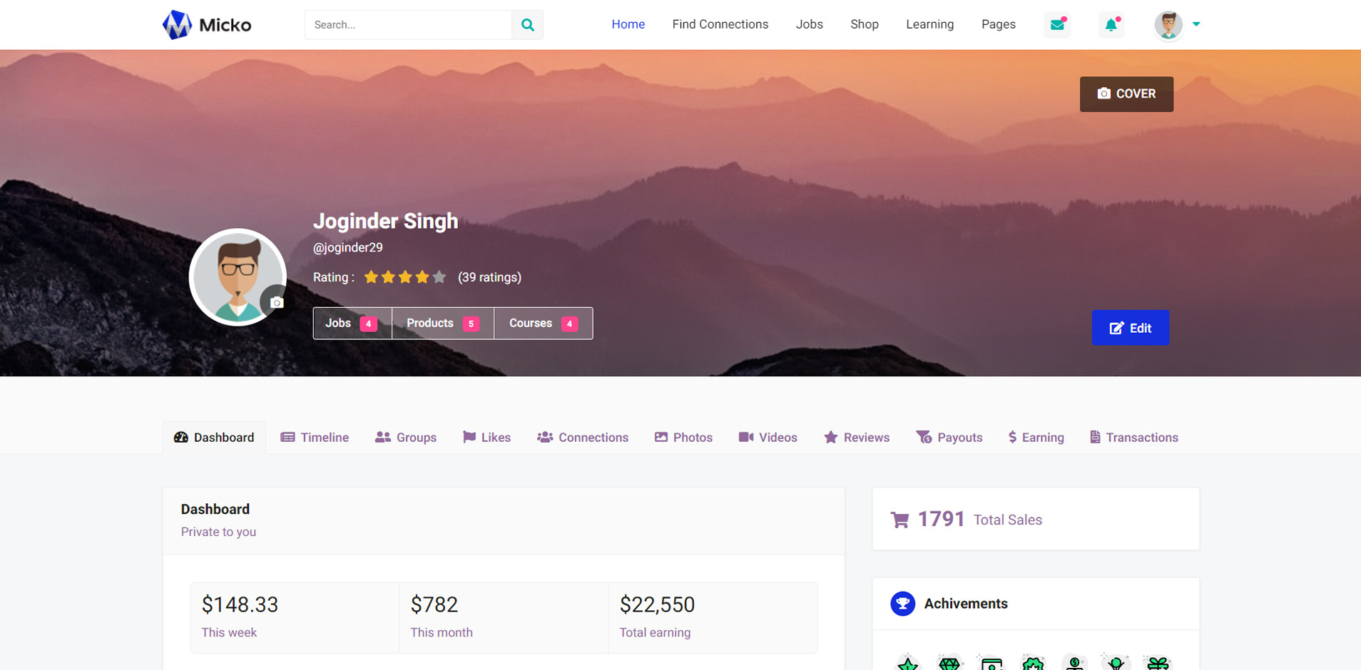 Micko is an all-in-one solution for creating Job Portal, Digital and online education marketplaces with social Nwtworking like Udemy, Skillshare, Coursera, Facebook, Instagram, Envato, Template Monster, Indeed, Monster Jobs etc.