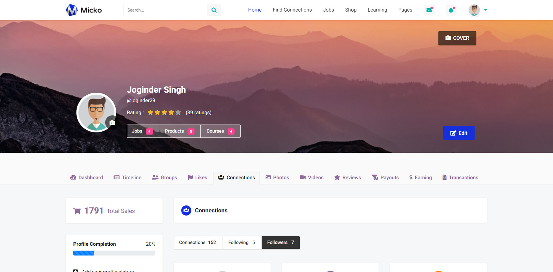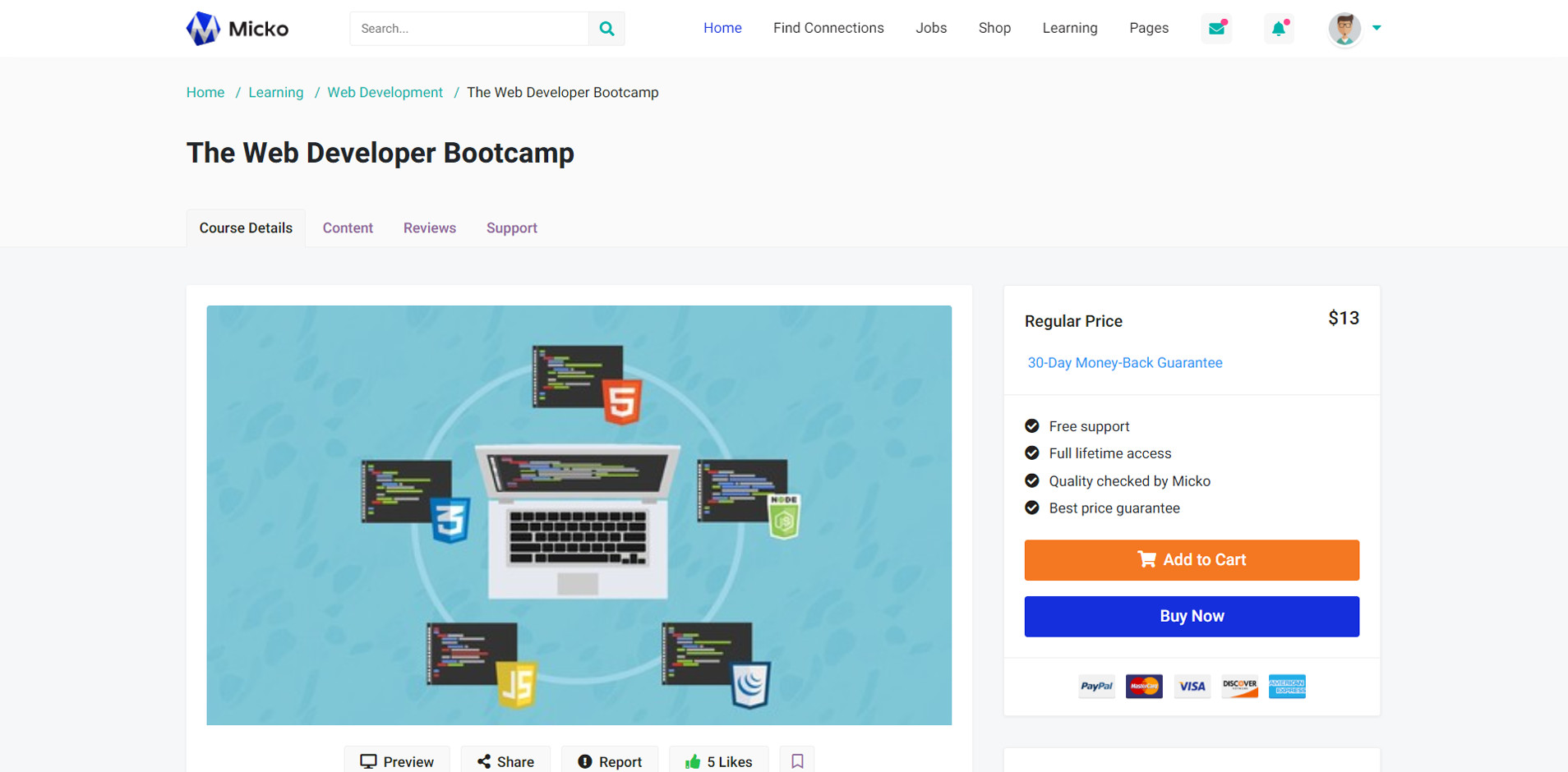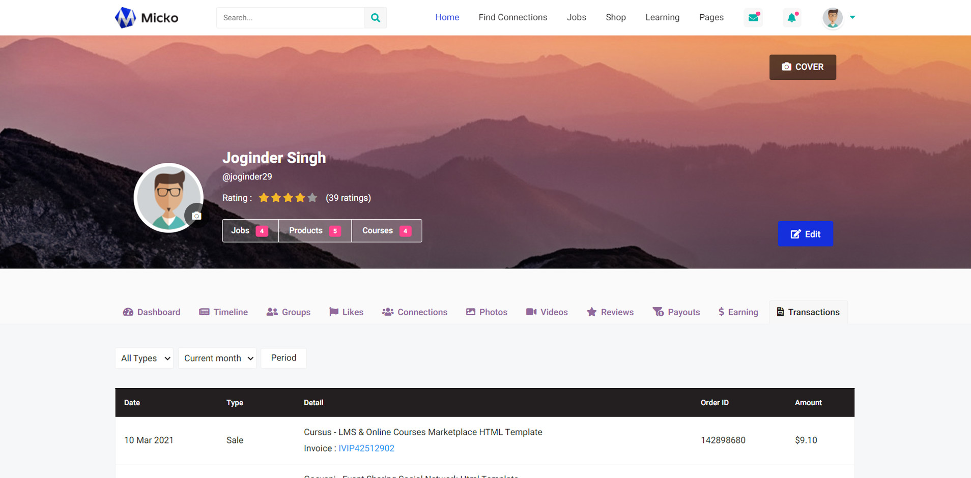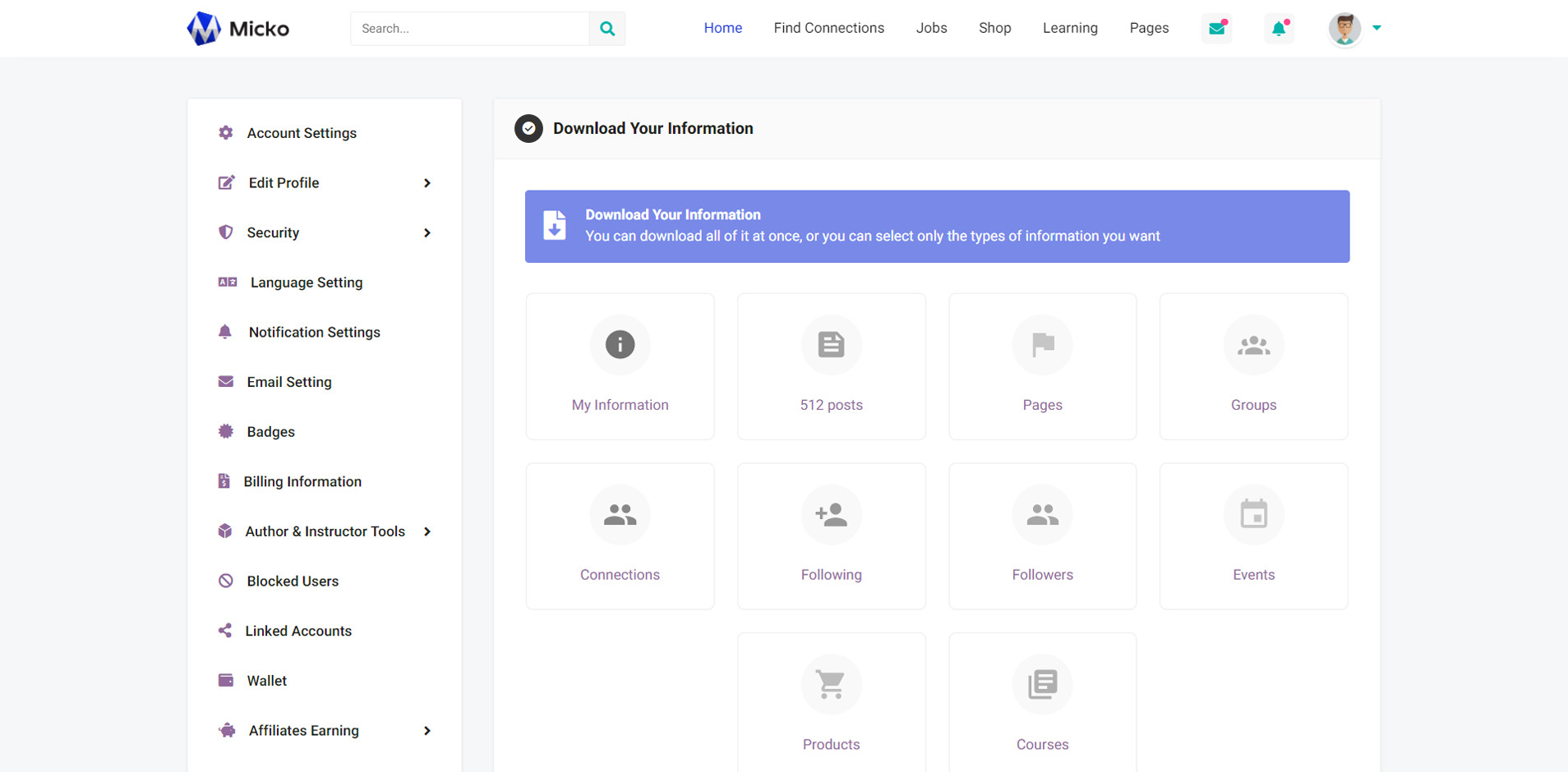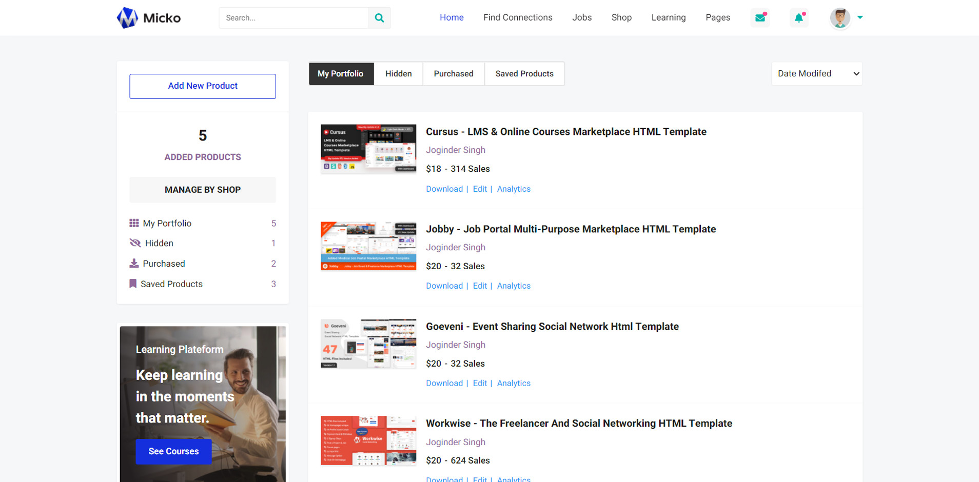 Micko is an all-in-one solution for creating Job Portal, Digital and online education marketplaces with social Nwtworking like Udemy, Skillshare, Coursera, Facebook, Instagram, Envato, Template Monster, Indeed, Monster Jobs etc.
