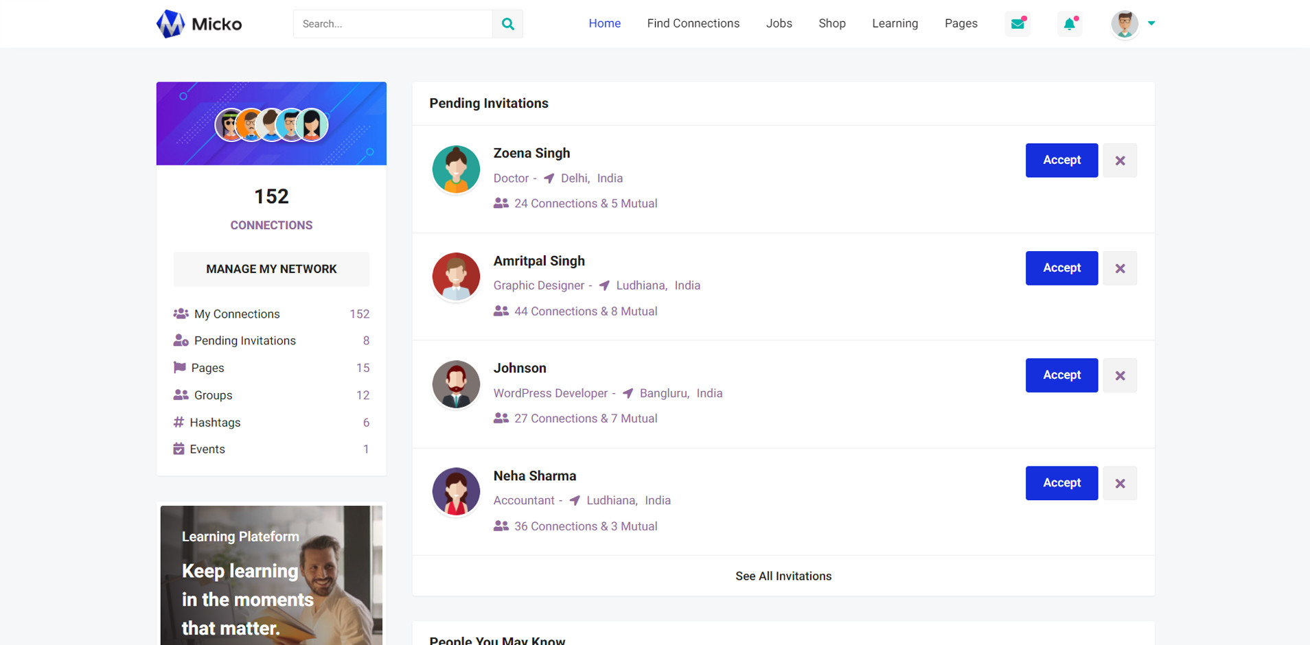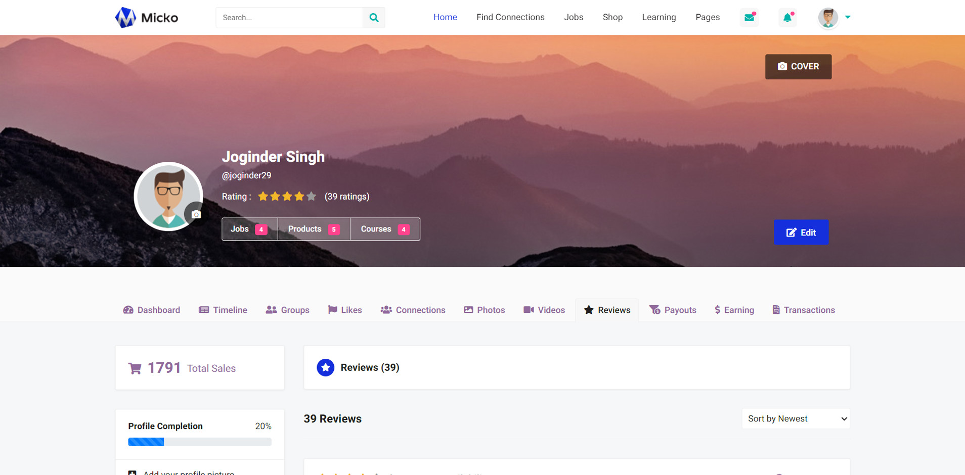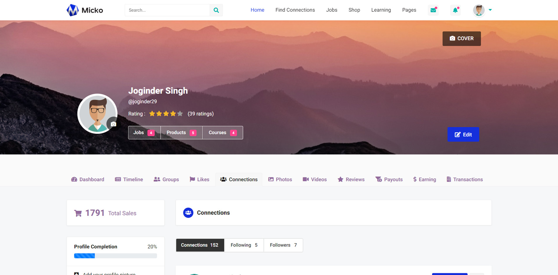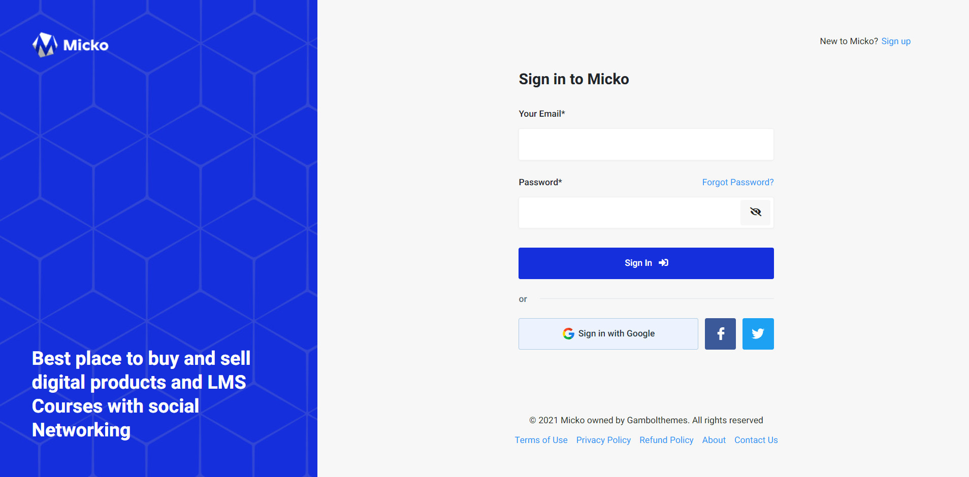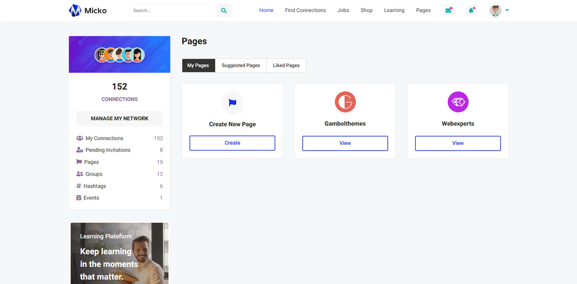 Micko is an all-in-one solution for creating Job Portal, Digital and online education marketplaces with social Nwtworking like Udemy, Skillshare, Coursera, Facebook, Instagram, Envato, Template Monster, Indeed, Monster Jobs etc.