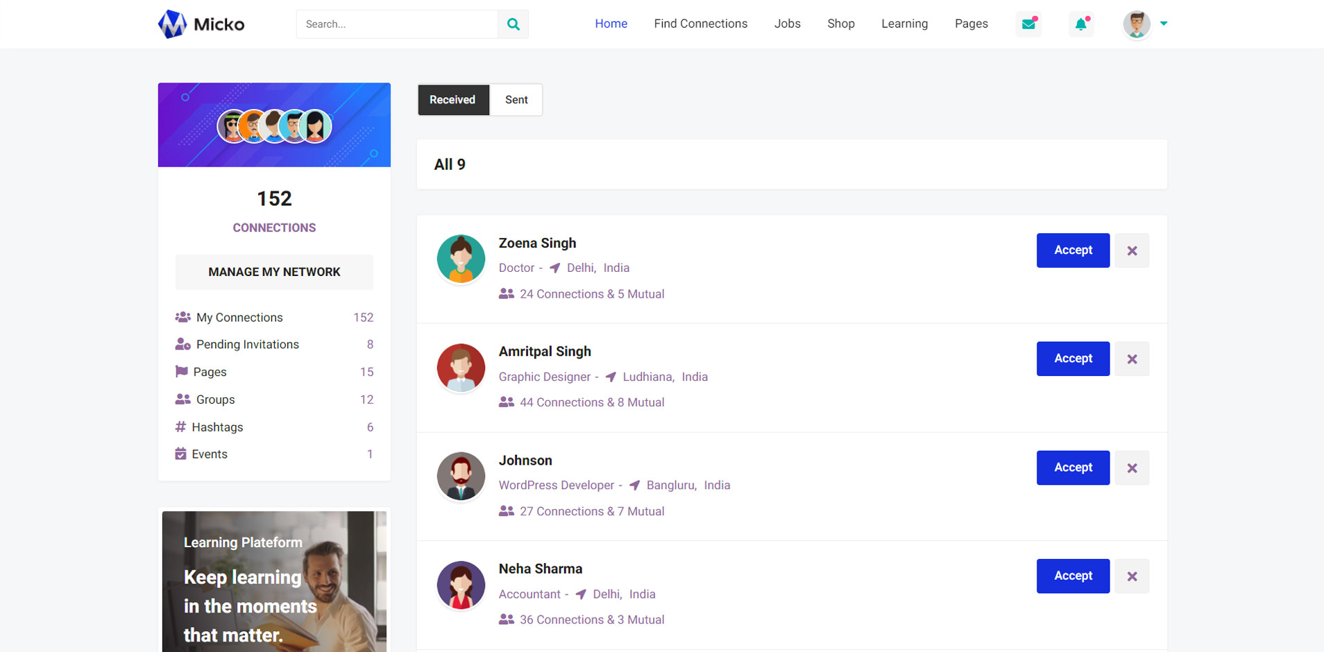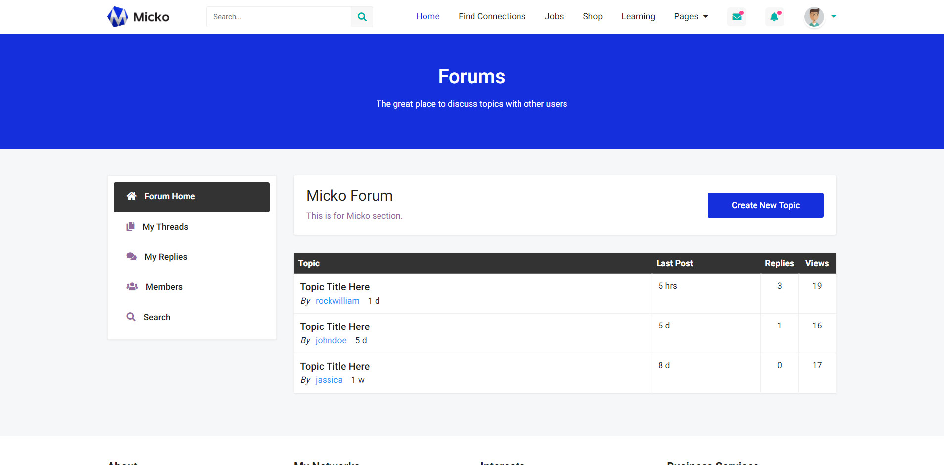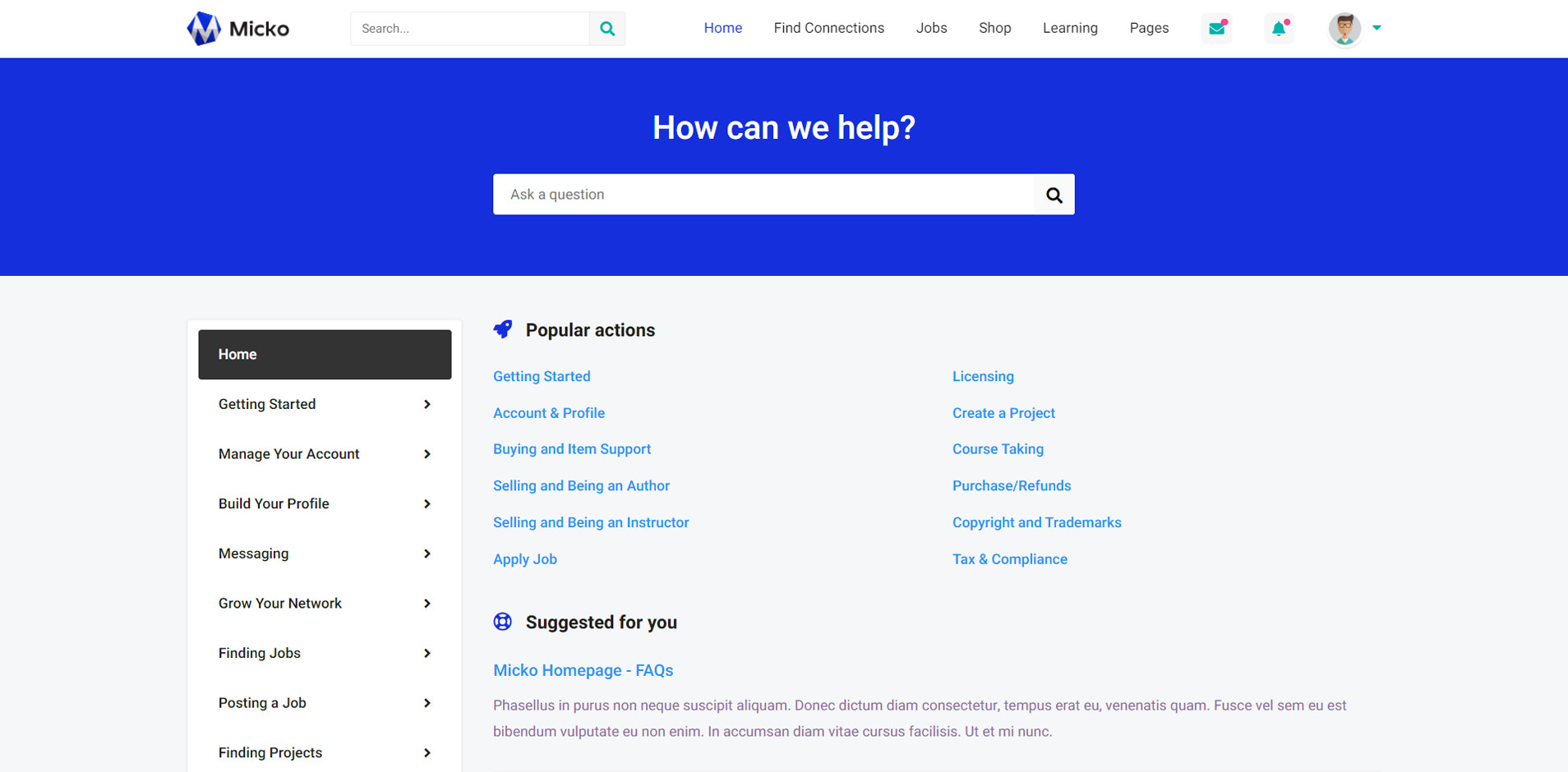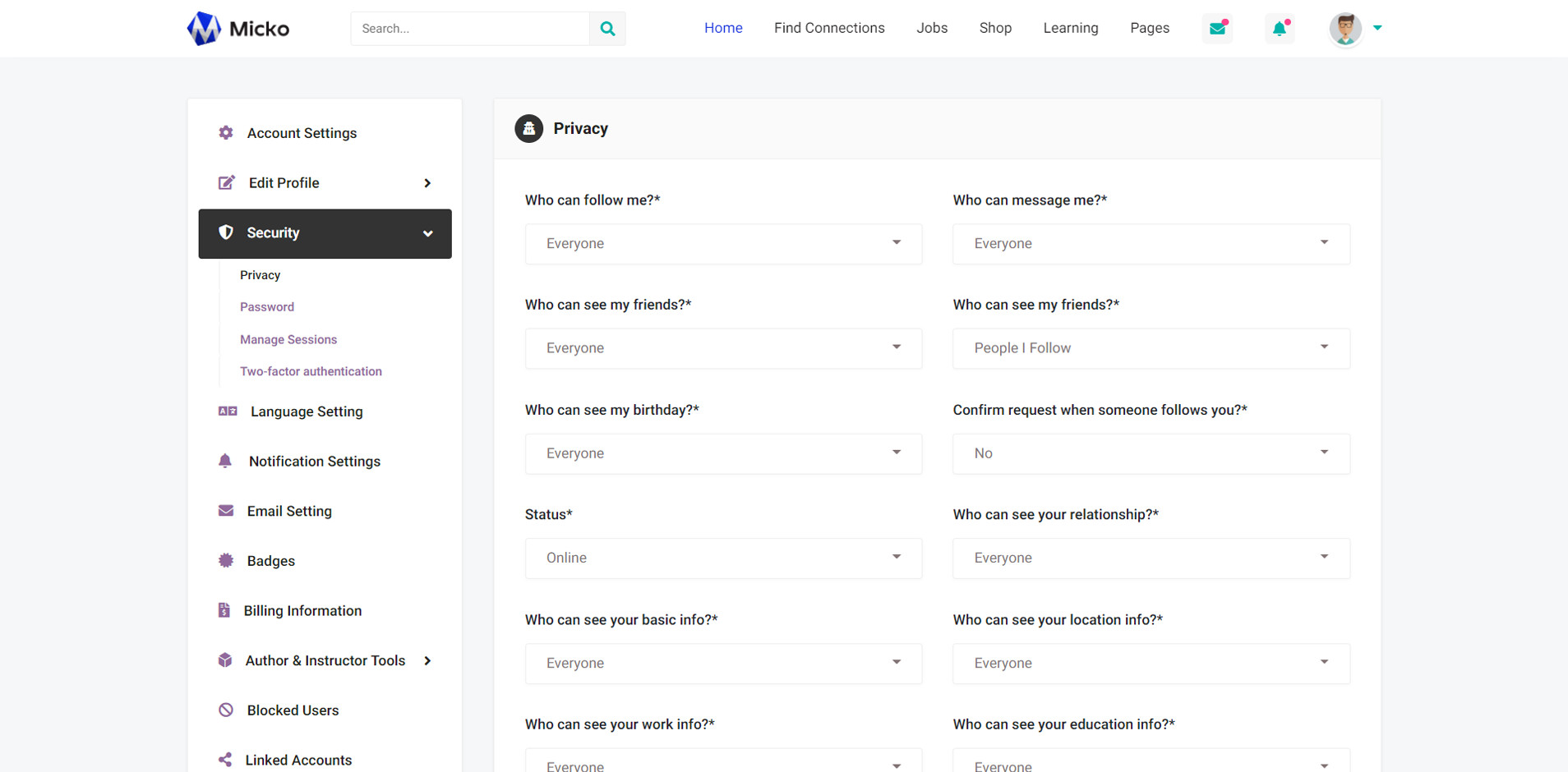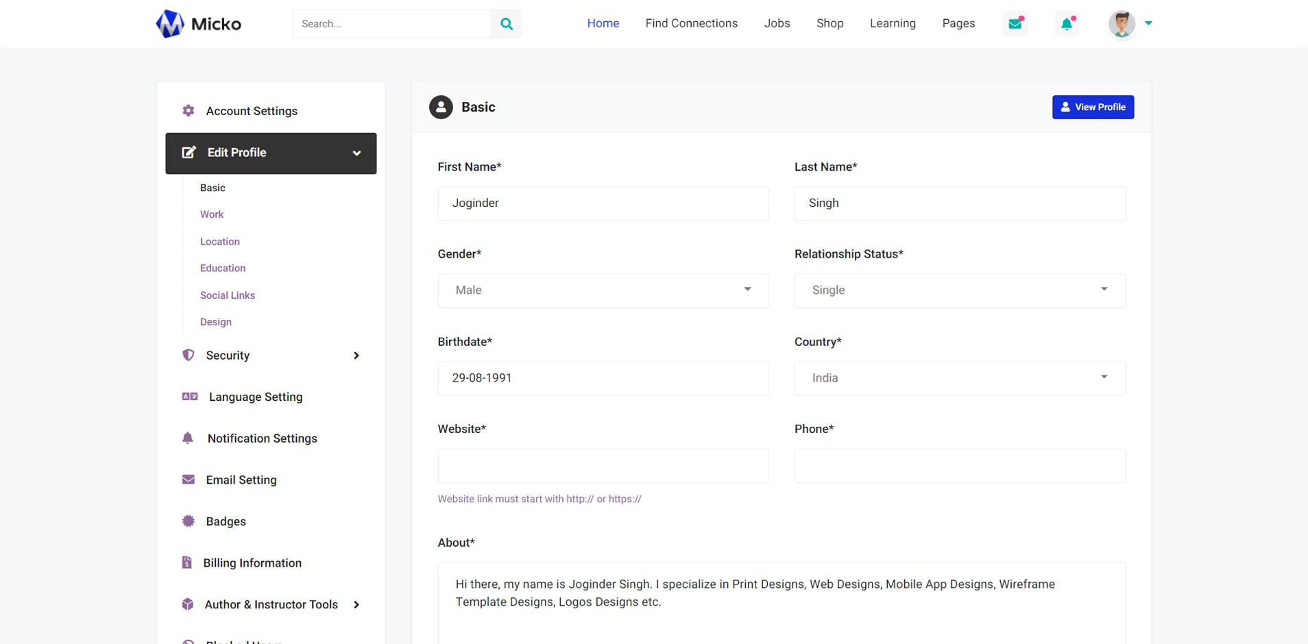 Micko is an all-in-one solution for creating Job Portal, Digital and online education marketplaces with social Nwtworking like Udemy, Skillshare, Coursera, Facebook, Instagram, Envato, Template Monster, Indeed, Monster Jobs etc.
