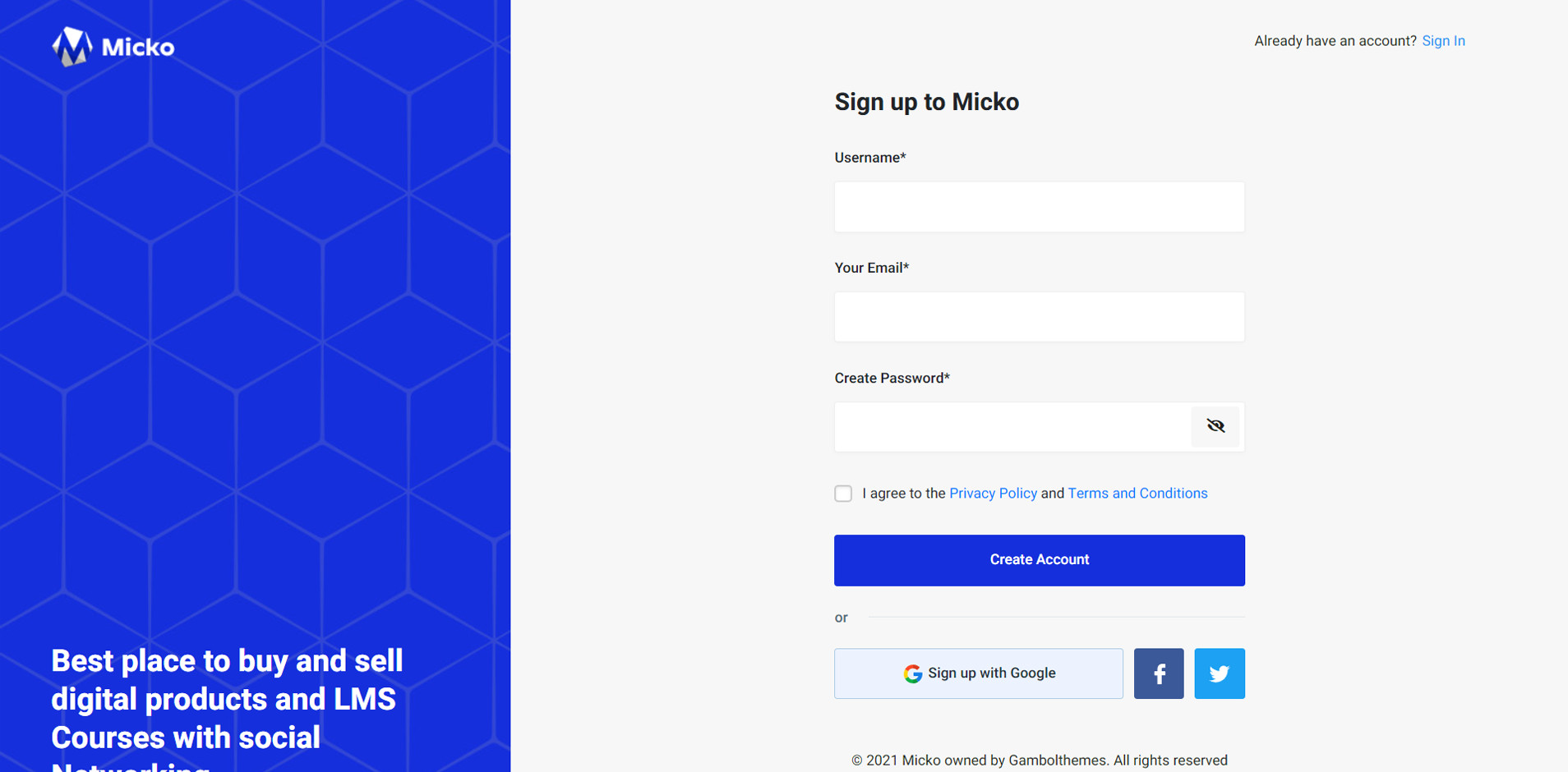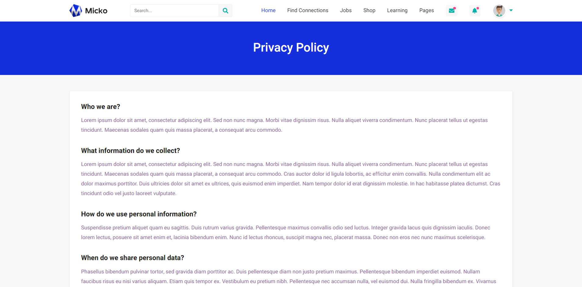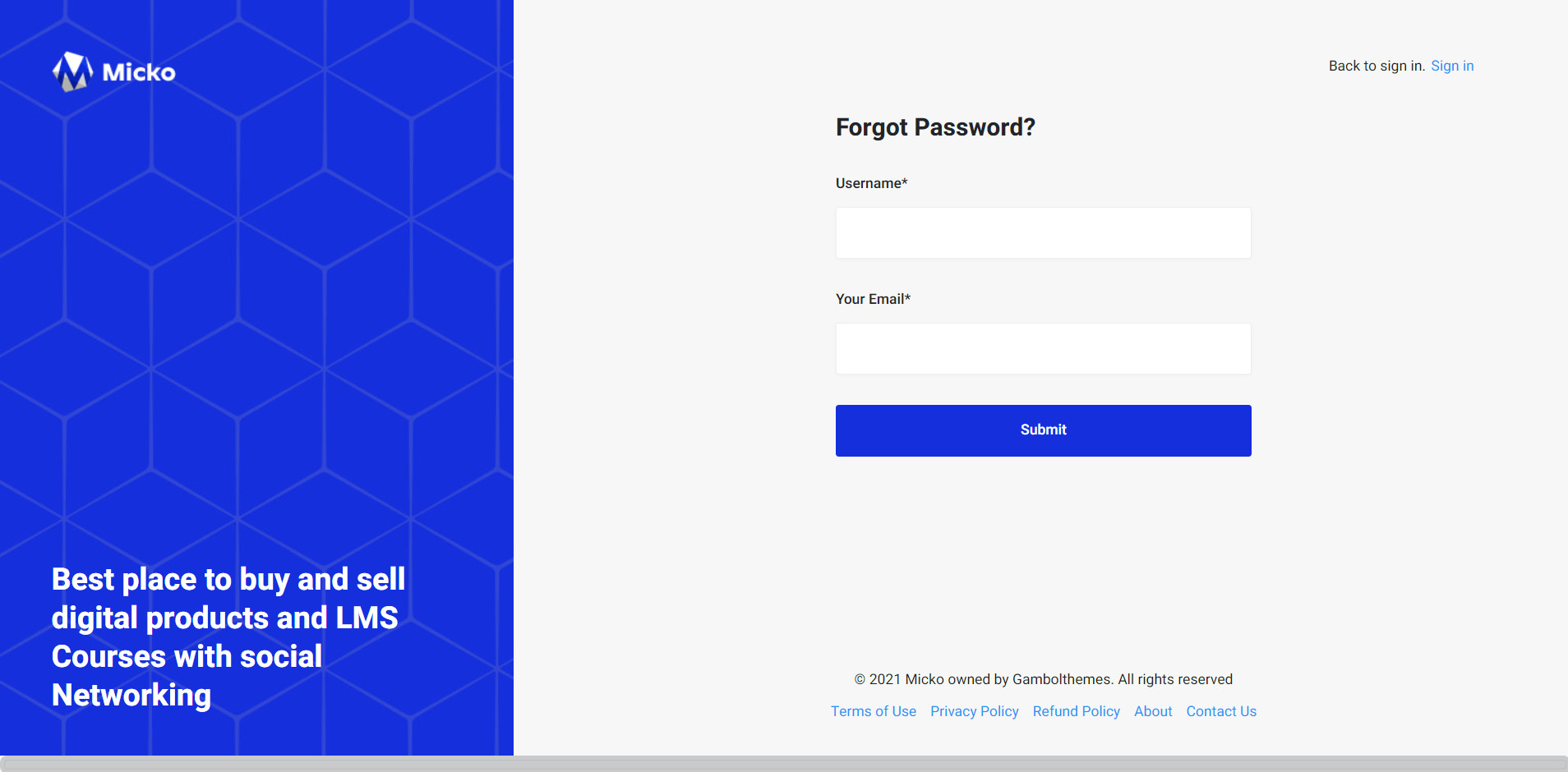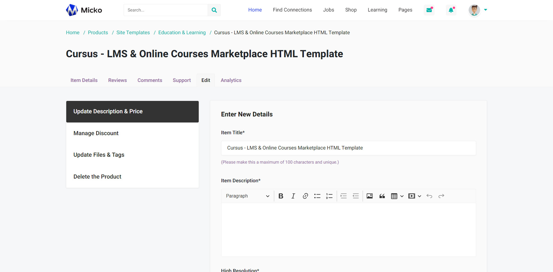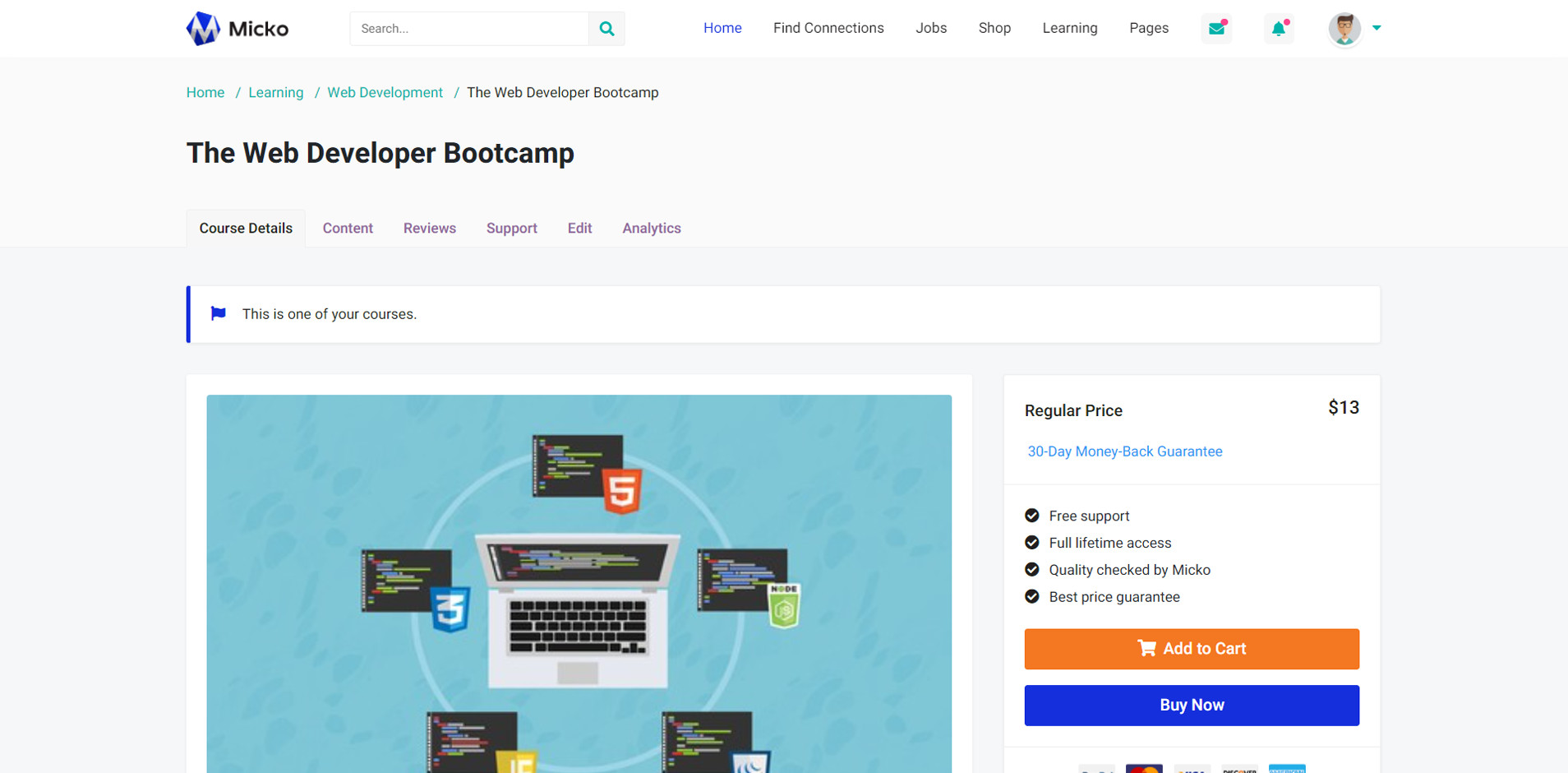 Micko is an all-in-one solution for creating Job Portal, Digital and online education marketplaces with social Nwtworking like Udemy, Skillshare, Coursera, Facebook, Instagram, Envato, Template Monster, Indeed, Monster Jobs etc.