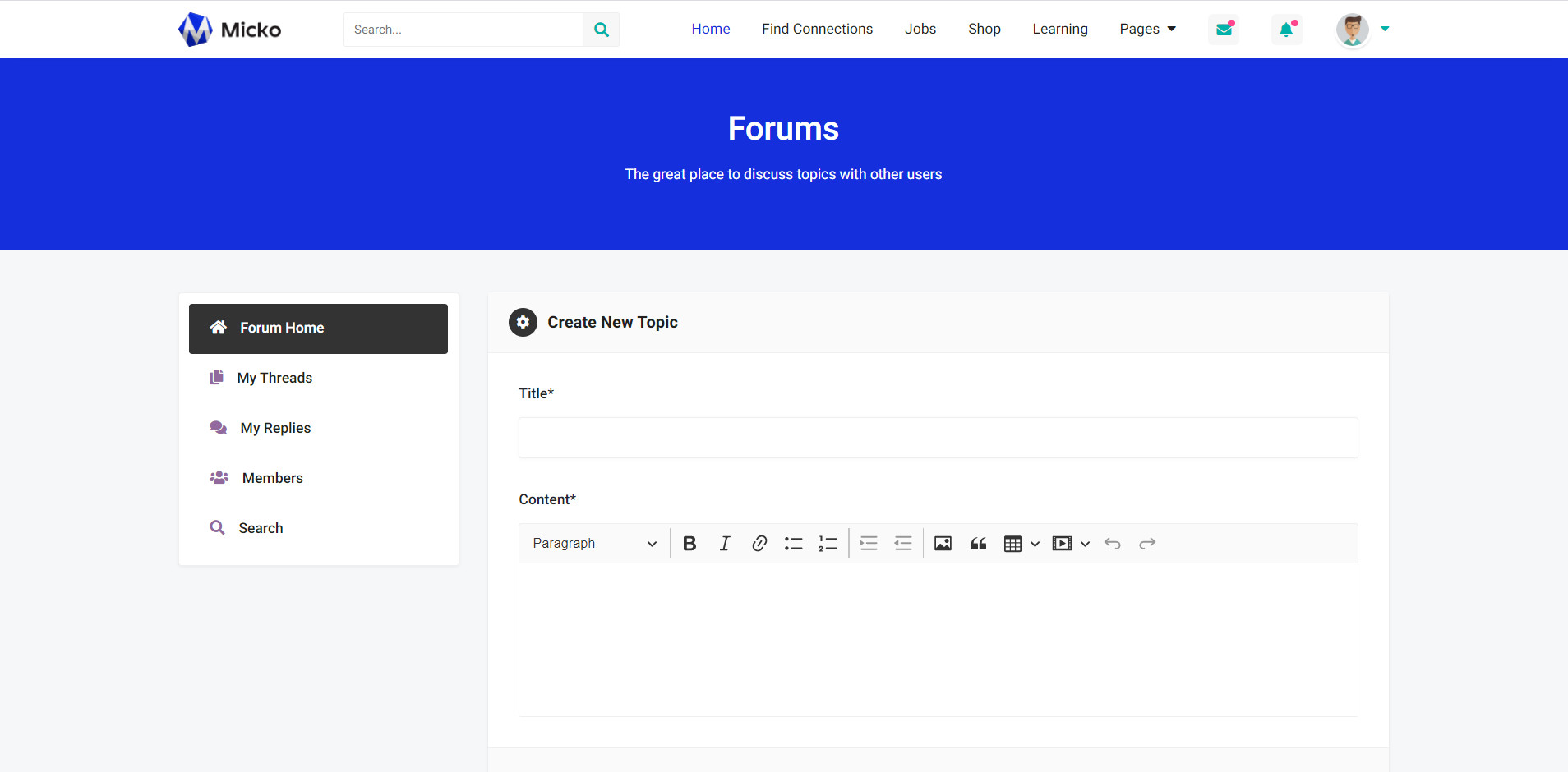 Forum Create New Topic