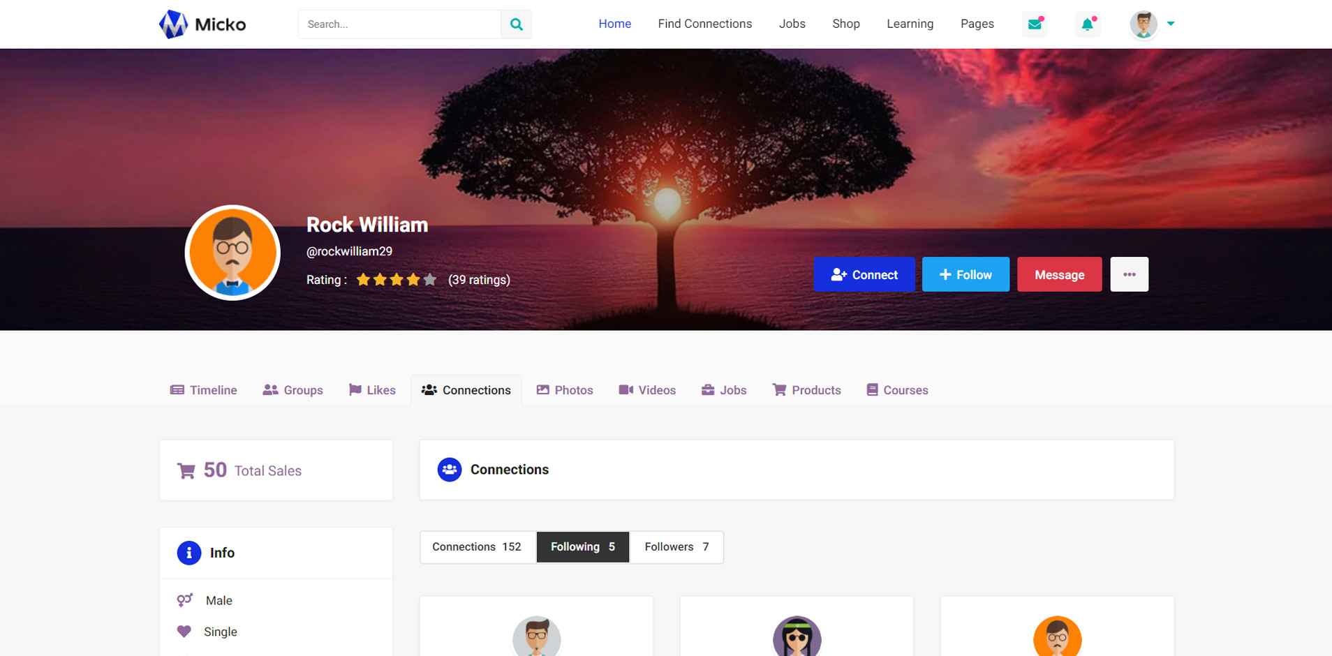 User Profile Connections Following