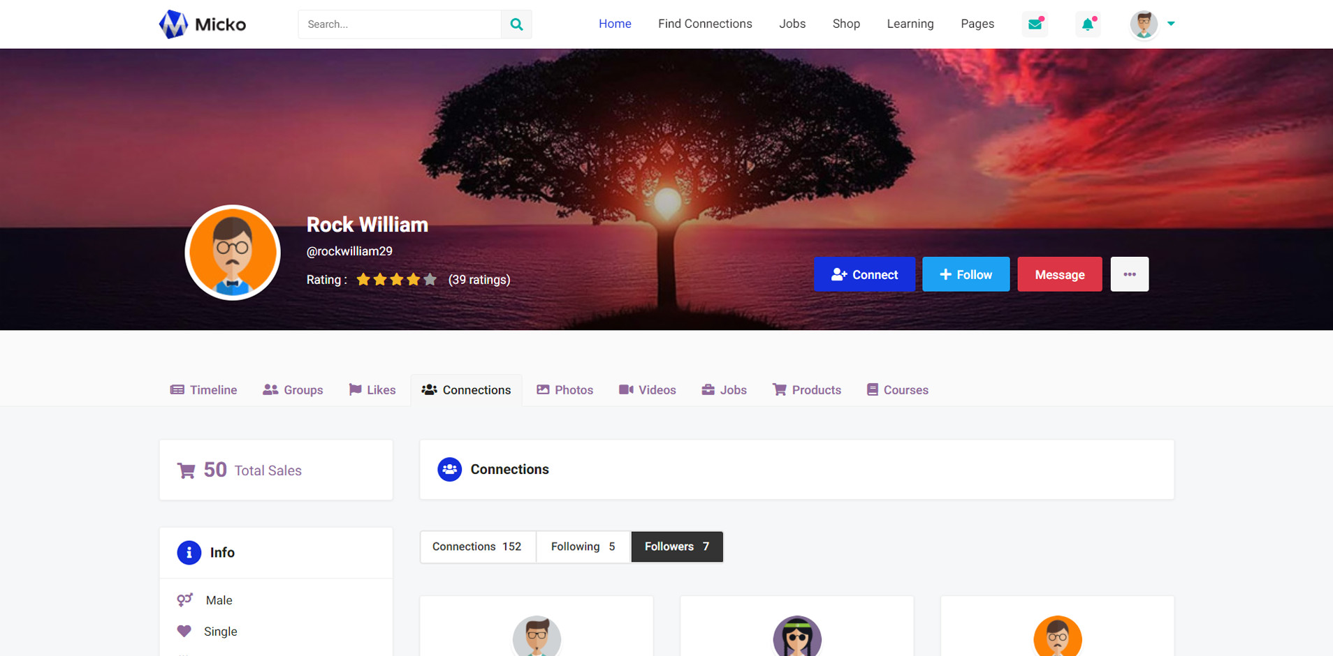 User Profile Connections Followers